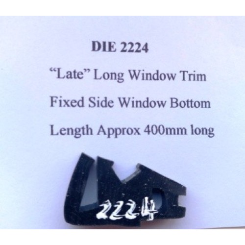 The later cars had a wider alloy trim that extended beyond the window aperture to almost the rear window and therefore a wider window rubber profile. Length is approx 400mm. You will need two (2) per car. You may need the Top Rubber Part No 0106